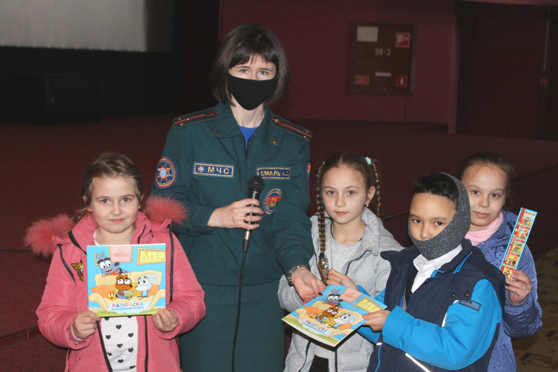 Спасатели Кобринского районного отдела по чрезвычайным ситуациям провели беседу по основам безопасности жизнедеятельности с зрителями кинотеатра перед началом киносеанса. А также продемонстрировали мультипликационные фильмы по безопасности для детей «Волшебная книга МЧС».