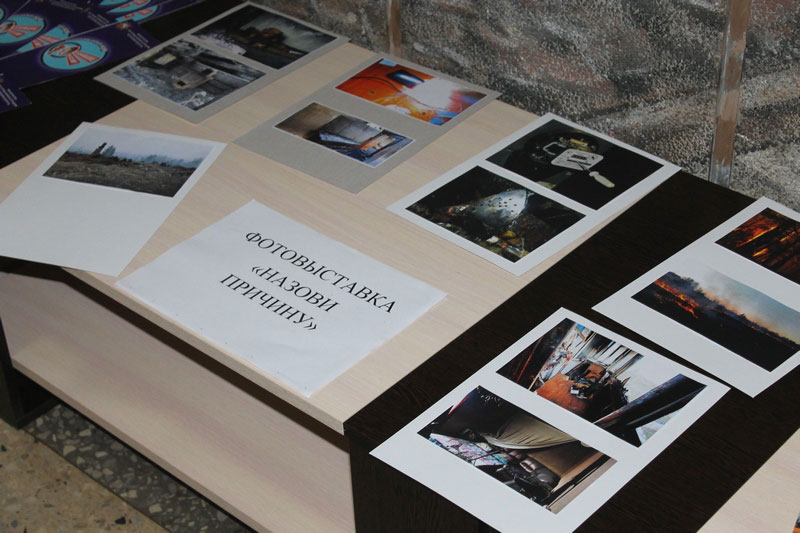 В фойе кинотеатра «Радуга» была организованафотовыставка «Назови причину». Посетители рассматривали работы, а затем, называли причины пожаров и рассуждали о том, как их можно было предотвратить.
